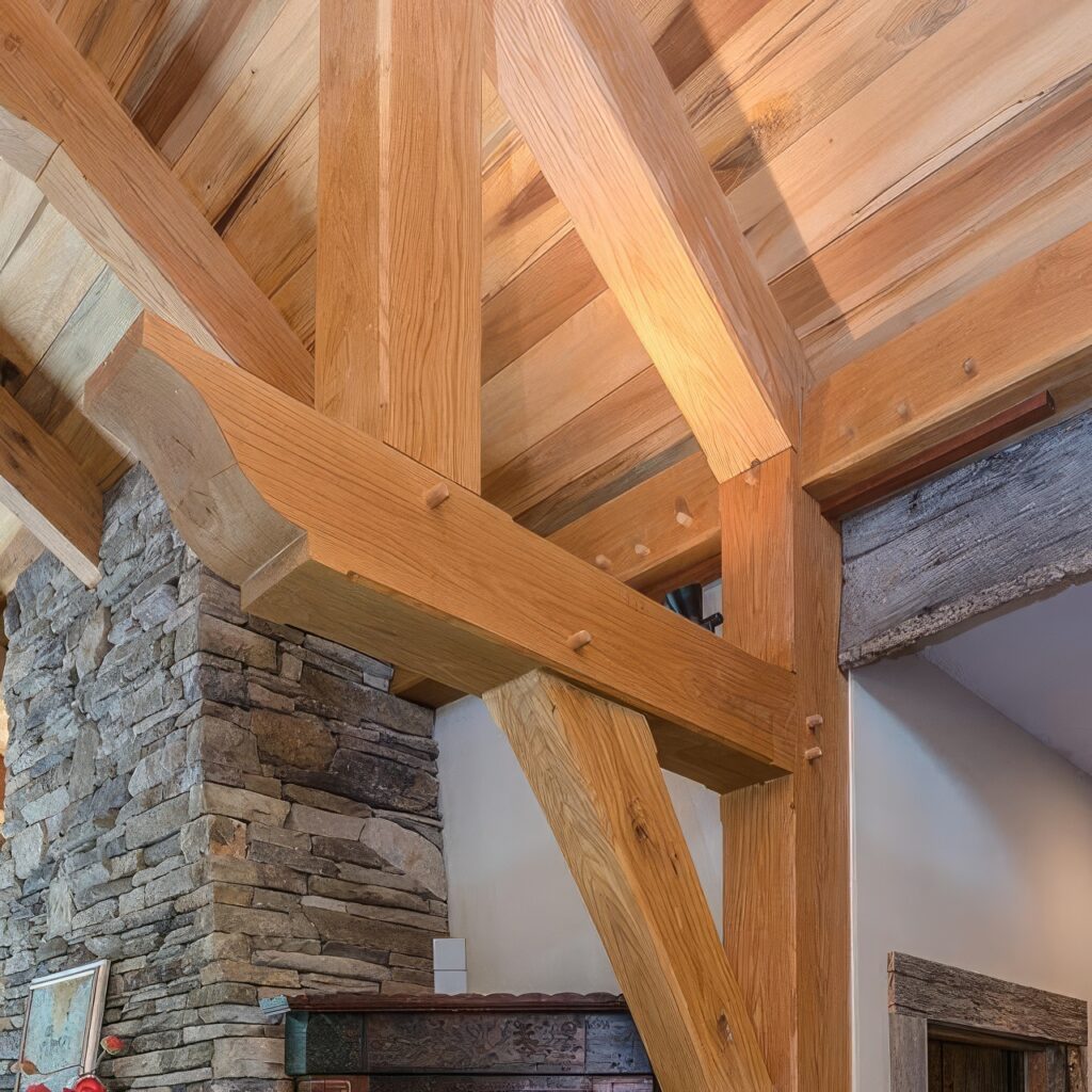 In some cases, engineered wood products like laminated veneer lumber (LVL) or I-joists are used for added strength, dimensional stability, and design flexibility.