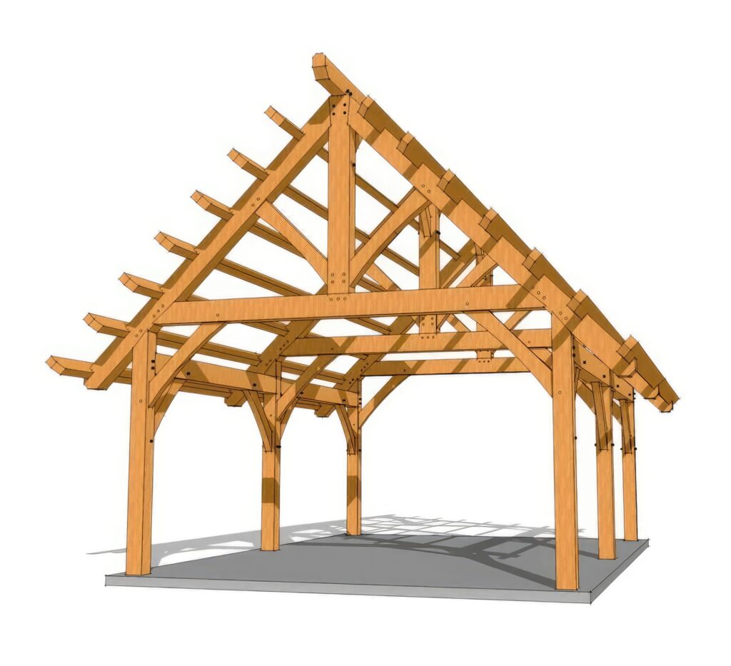 - Laying out the primary structural members (beams, ridge, bearing walls).